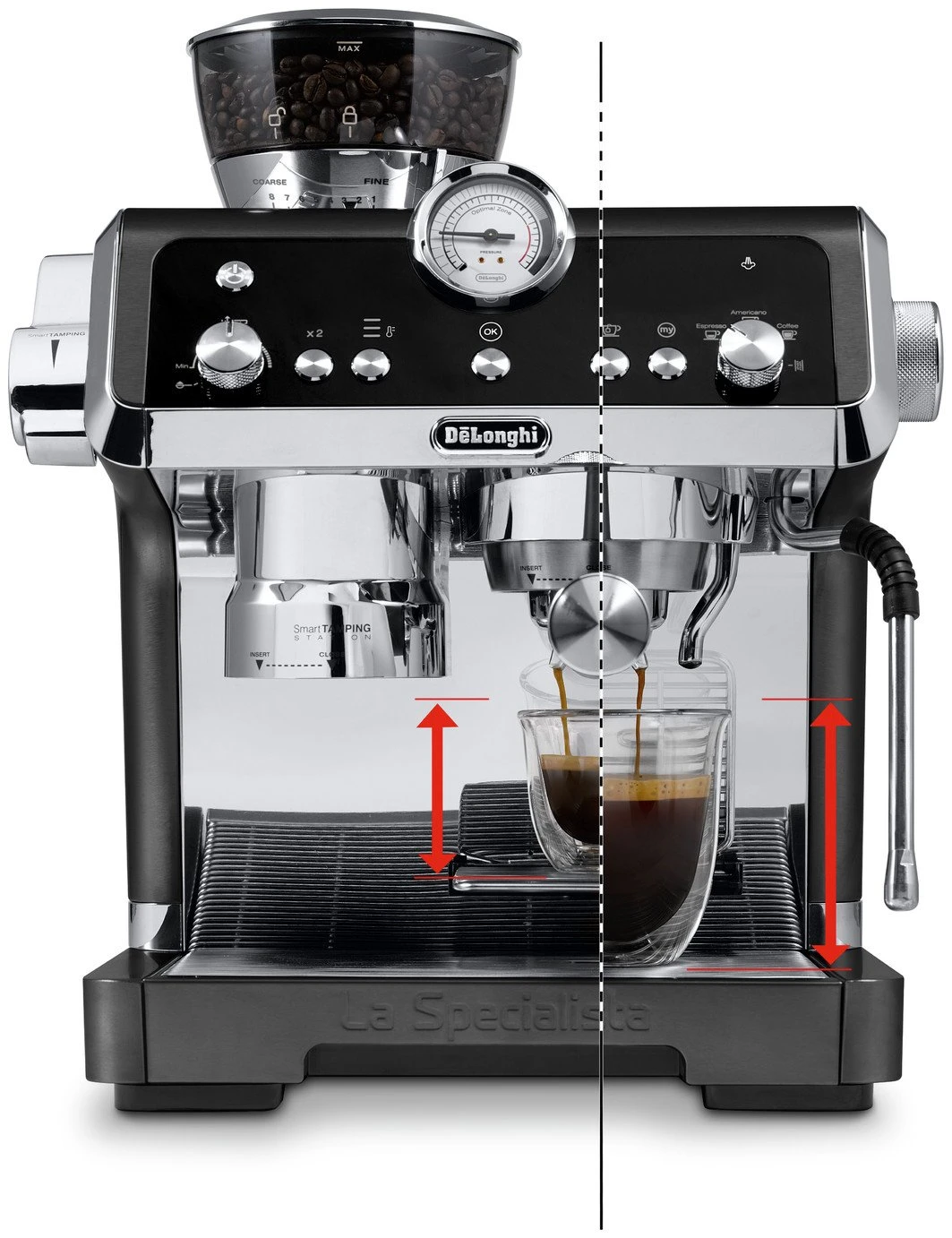 The Smart Tamping Station is inspired by the professional tamping process and always ensures consistent and correct pressure is applied to the coffee dose for the correct extraction. Mess-free operation as after grinding, the portafilter does not need to be removed from the machine.