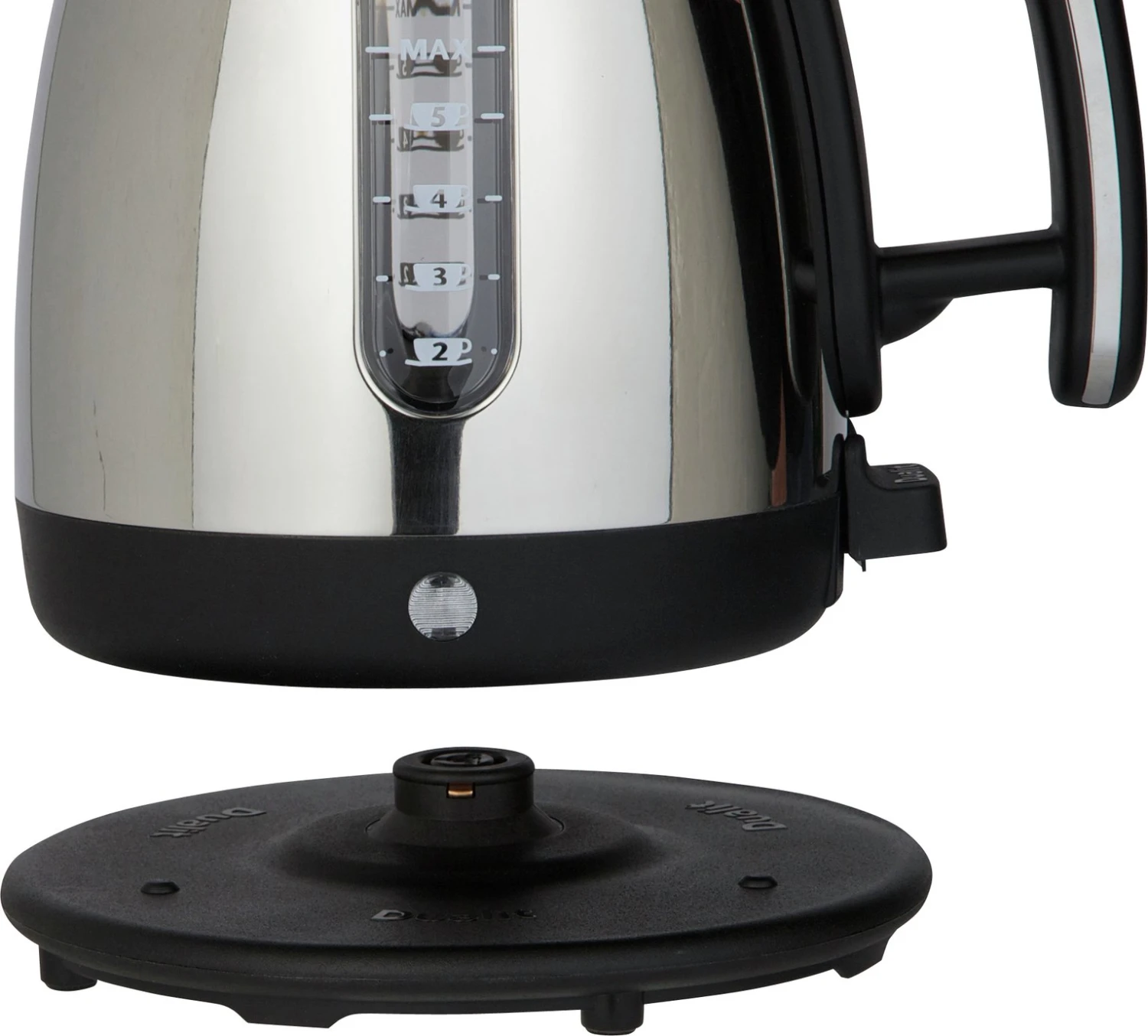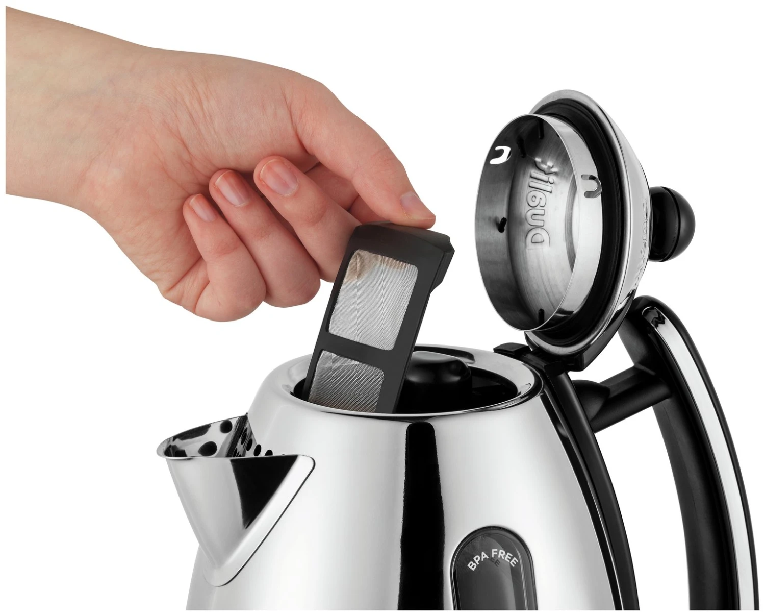 The BPA free viewing windows feature a cup level indicator on one side and the other side measures the water in litres. Fill the kettle with just the right amount of water you need to boil, down to just one cup, saving time, energy and water.
