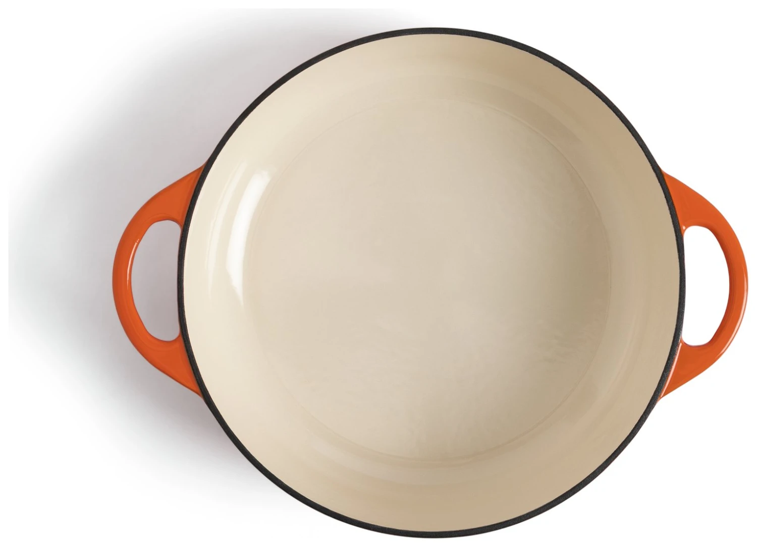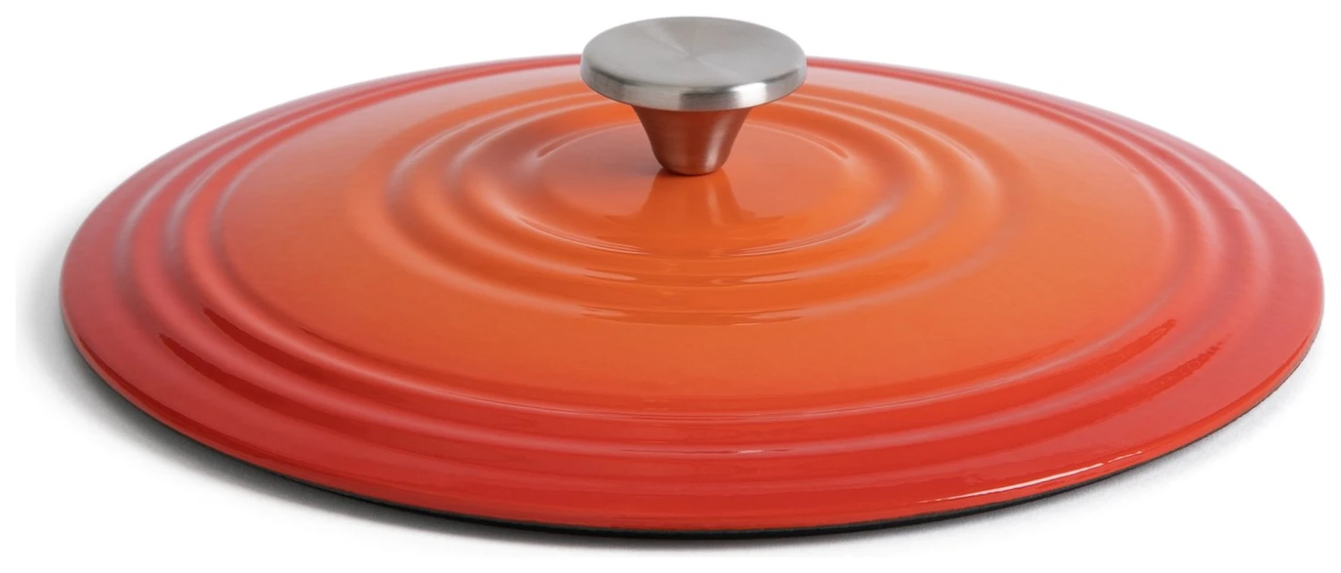 Classic cookware at its best. This handsome cast iron dish serves up good looks and practicality in one. The shallow profile is perfect for browning and frying on the hob. Gas, electric, induction, it likes them all. Cooks evenly and keeps food hotter for longer. A tight-fitting lid keeps all that moisture and flavour sealed in. With its gradient orange enamel finish, sturdy handles and smart bronze knob, it’s a pot you’ll be proud to bring to the table.