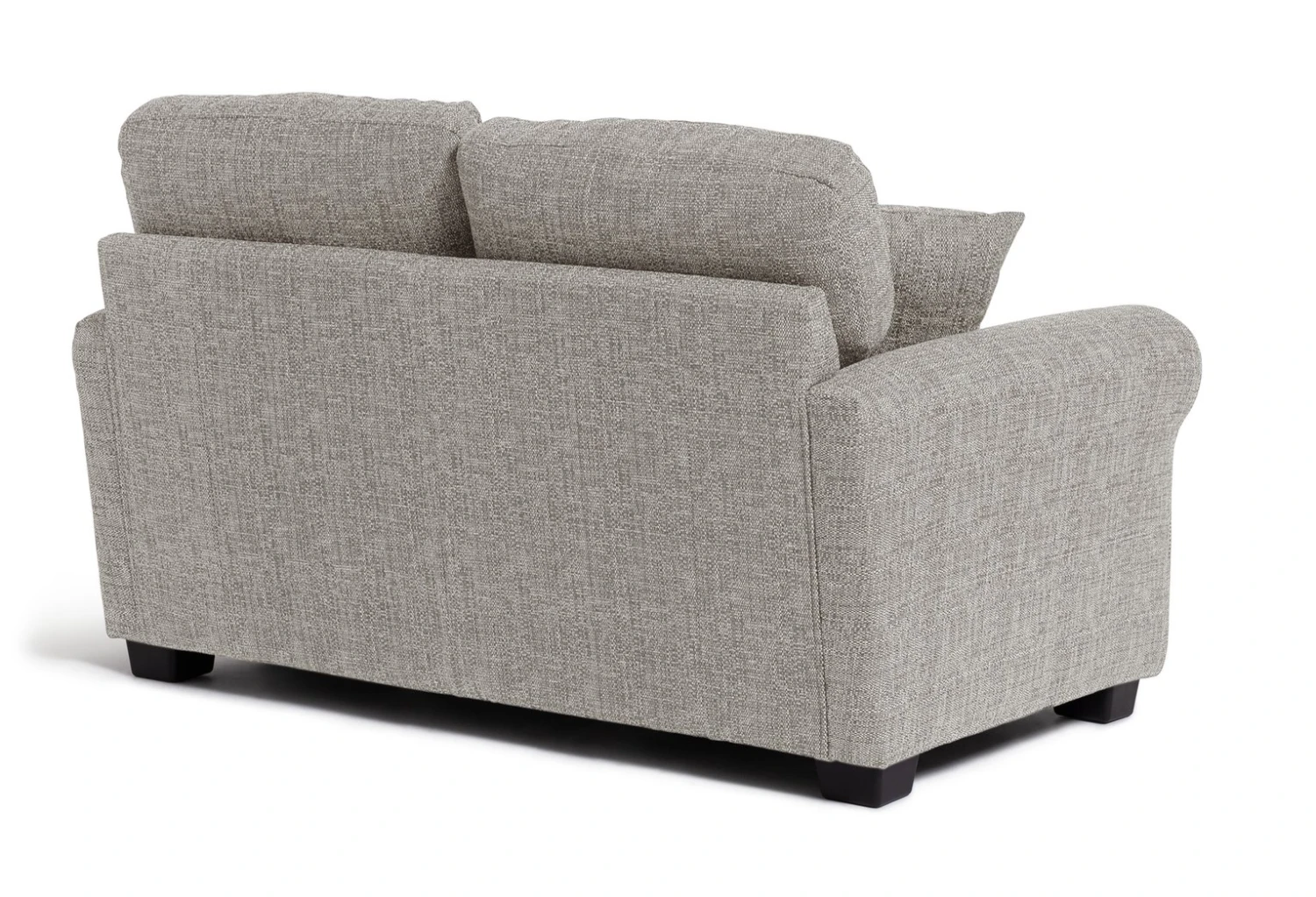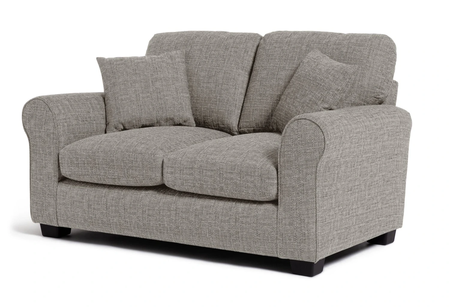 Sink in. Our classic Lisbon sofa features deep seat cushions, generous scroll arms and cushioned backs. Upholstered in a textured light grey fabric. This 2-seater sofa is all about comfort, relaxation and effortless style.