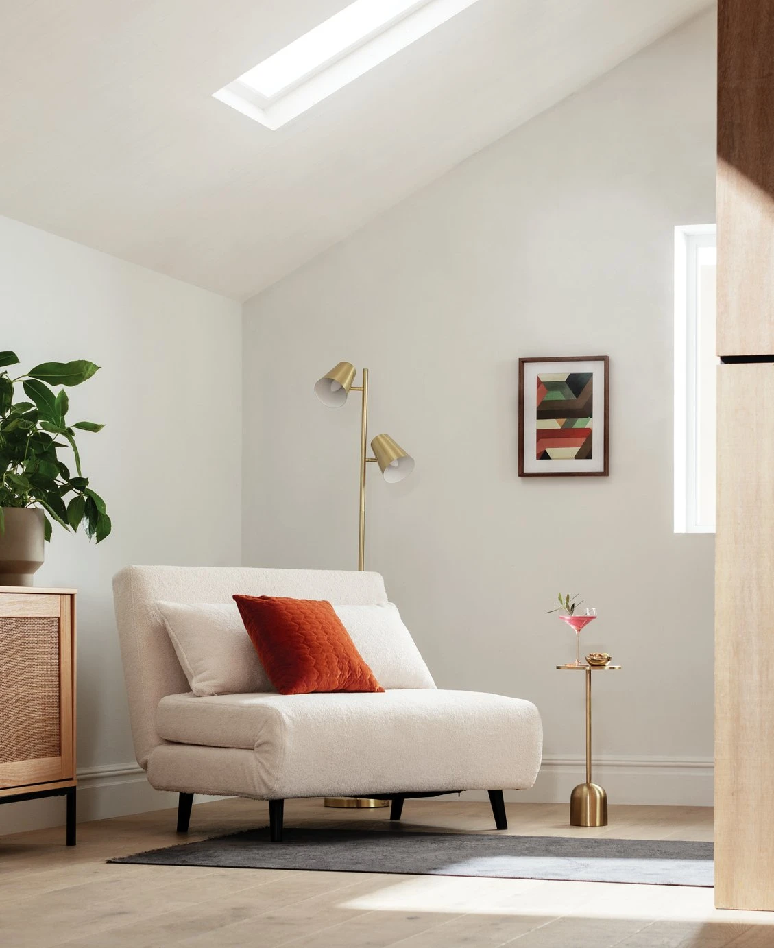 A spare bed for two? It’s Roma to the rescue. In classic cream our modern chair bed is a smart way to be prepared. Its day job is being a comfy chair. If it’s on the night shift, it transforms into a comfy double bed. Clever. Either way the plump stuffed foam cushions are great for relaxing. Made in boucle, it boasts rich yet soft texture and is easy to maintain. Arrives complete, simply pop on the feet.