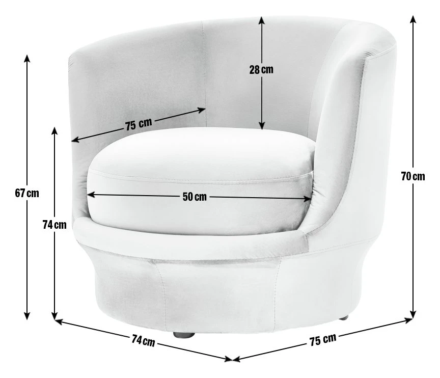 - Size H70, W74, D75cm.