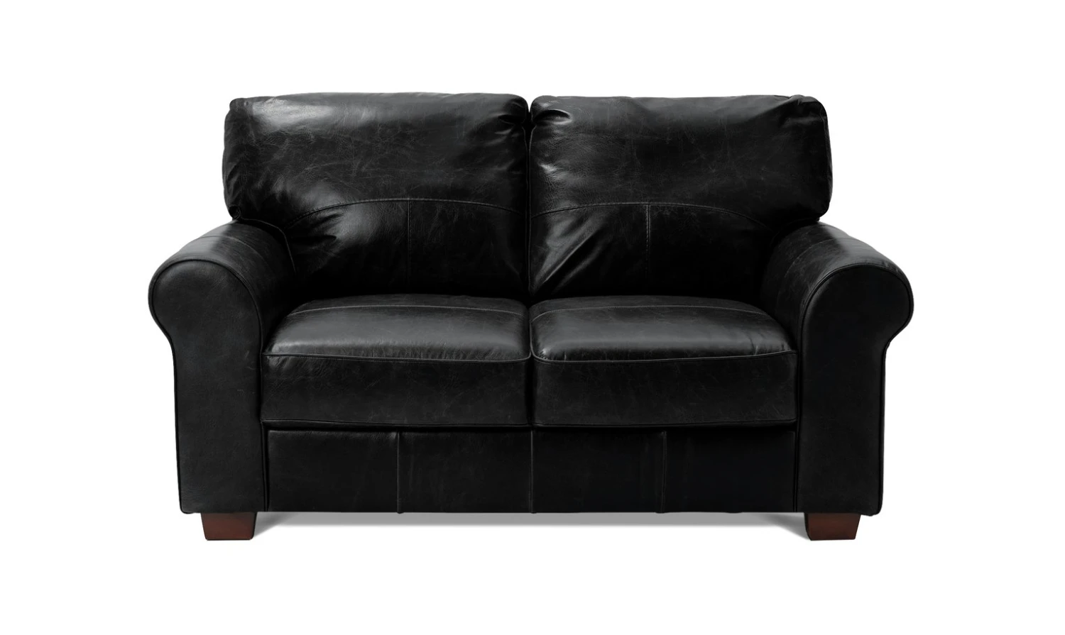 Strong and sophisticated form. The Habitat Salisbury is beautifully crafted using top quality Italian semi aniline leather. It has a subtle creasing, to give this 2-seater a timeless distressed finish. Its beautiful scroll arms offer a classical touch. We love the look of the wide wooden feet, that raise the sofa from the ground. A chic choice.