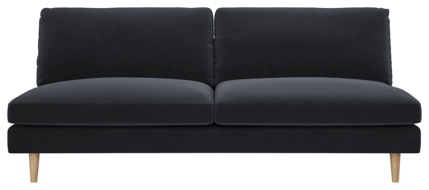 With its pared-back design and plump, pillow-like seat and back cushions, the Teo charcoal Jade velvet 3 seater has a fun feel and a small footprint. Created in the Habitat Design Studio and made in Europe, the contemporary foam and fibre sofa has a relaxed, informal look, enhanced by its wrapped cushion covers. Its armless design and dowelled wood legs give the design a light, airy feel, perfect for smaller spaces. Upholstered in our easy velvet fabric which is super durable and spill-resistant, it’s perfect for busy homes.