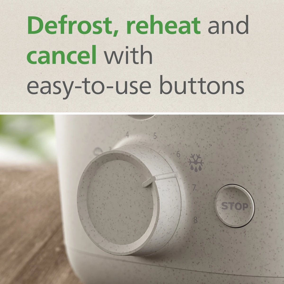 - Cancel, defrost and reheat function.