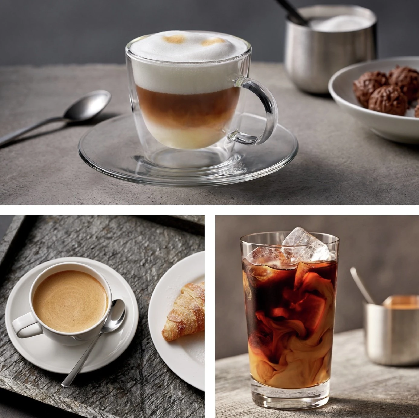 - Coffee options include: espresso, cappuccino, latte, ristretto, and latte macchiato.