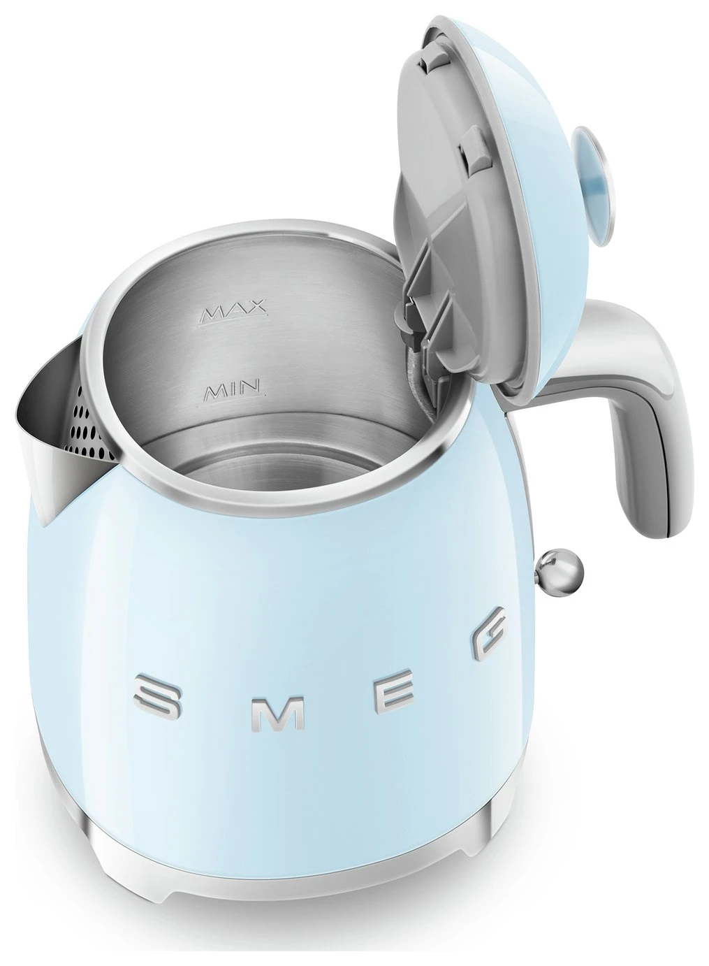 With a capacity of 0.8 litres, Smeg’s KLF05 Mini Kettle makes up to 3 cups of tea or coffee. The smaller capacity minimises any water waste. The spout has been specially designed with a balanced weight for an easy pour and the lid has been built to manually open at an angle of 80 degrees for easy filling. With a 1400W power output, this kettle offers superfast boiling but uses less energy than a standard kettle, saving on energy.
