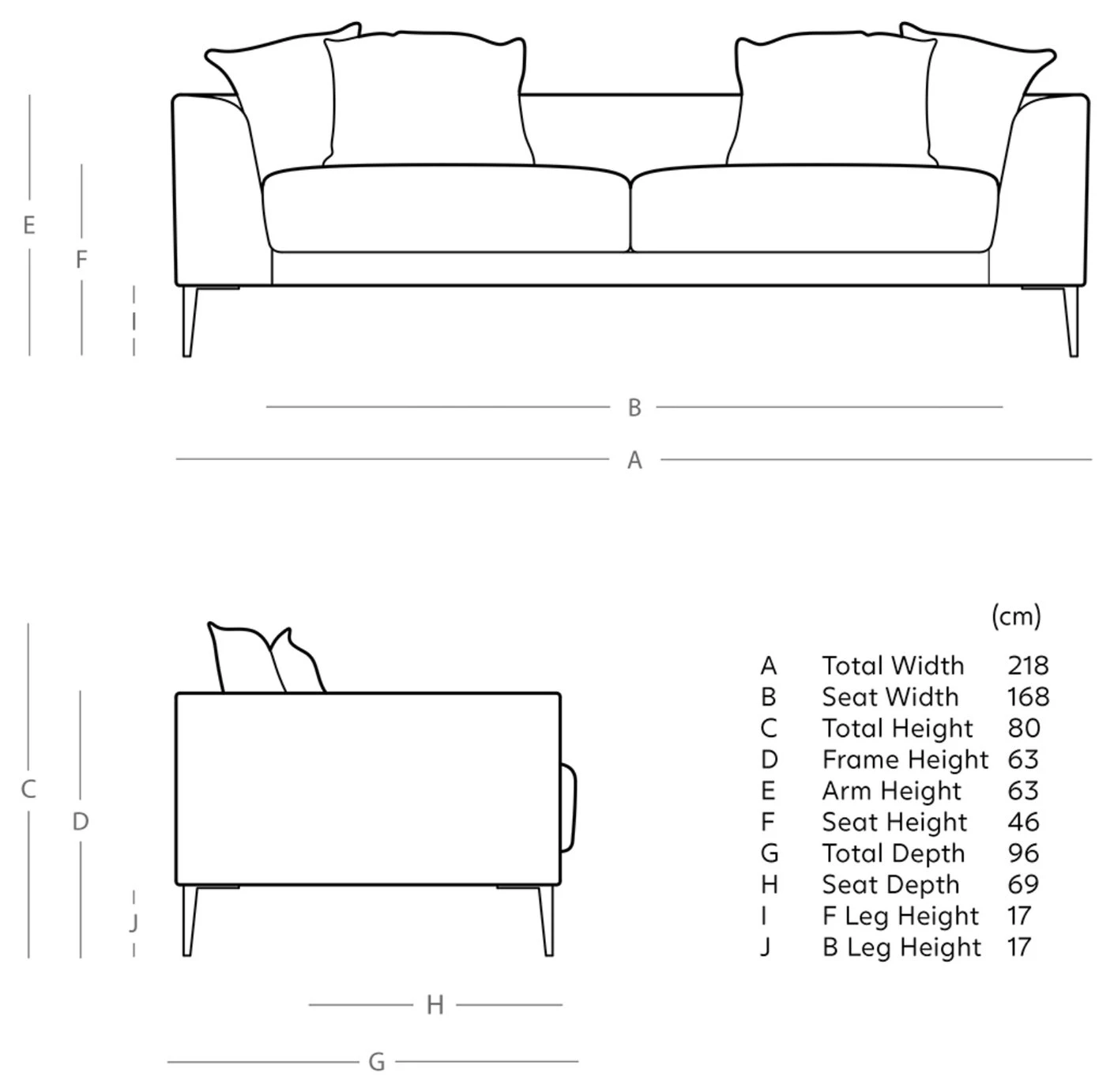 - Width of seating area between arms: 168cm.