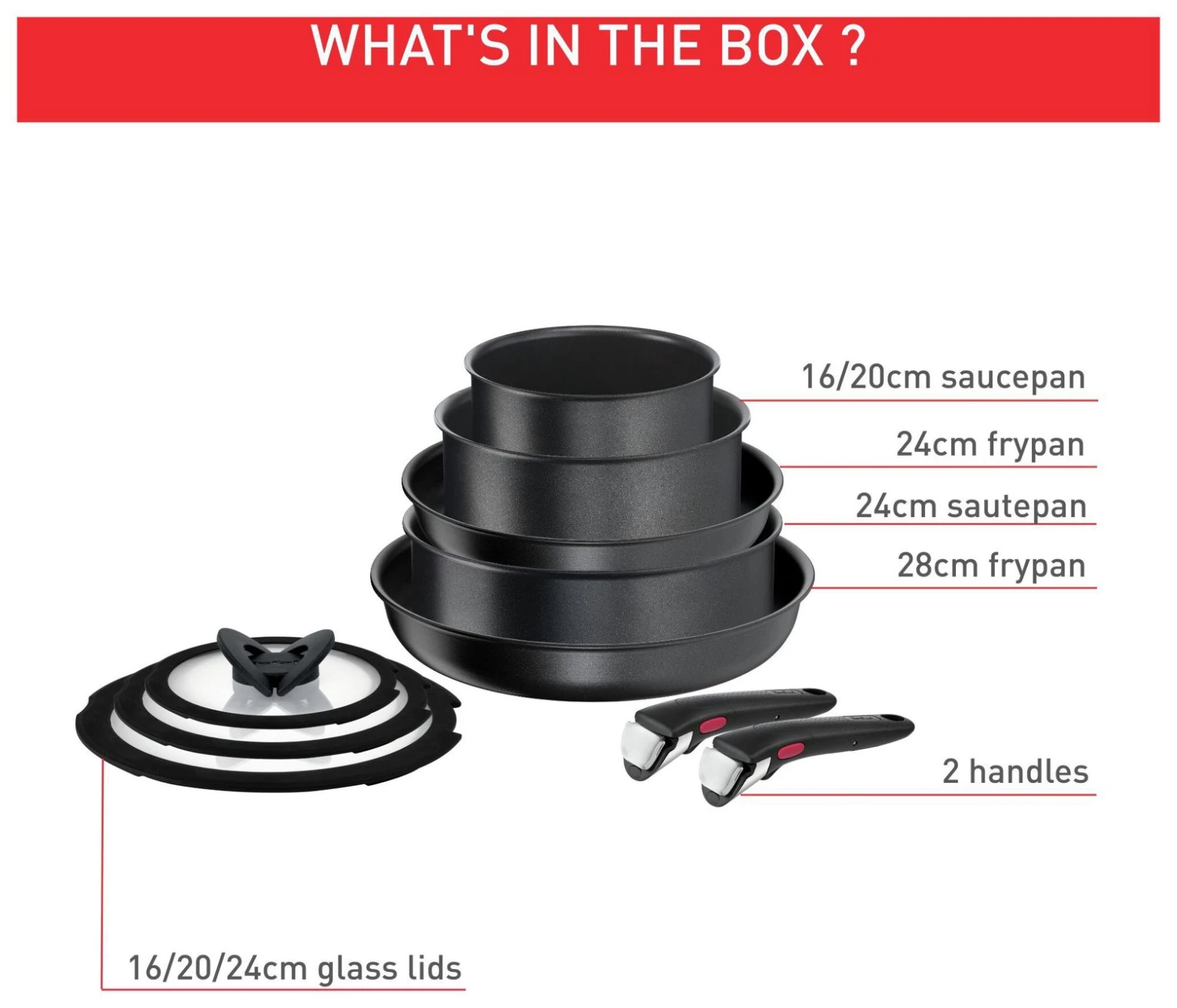 - 24cm frying pan 28cm frying pan 16cm saucepan 20cm saucepan 24cm saute pan 16cm glass lid 20cm glass lid 24cm glass lid 2 Ingenio handle.