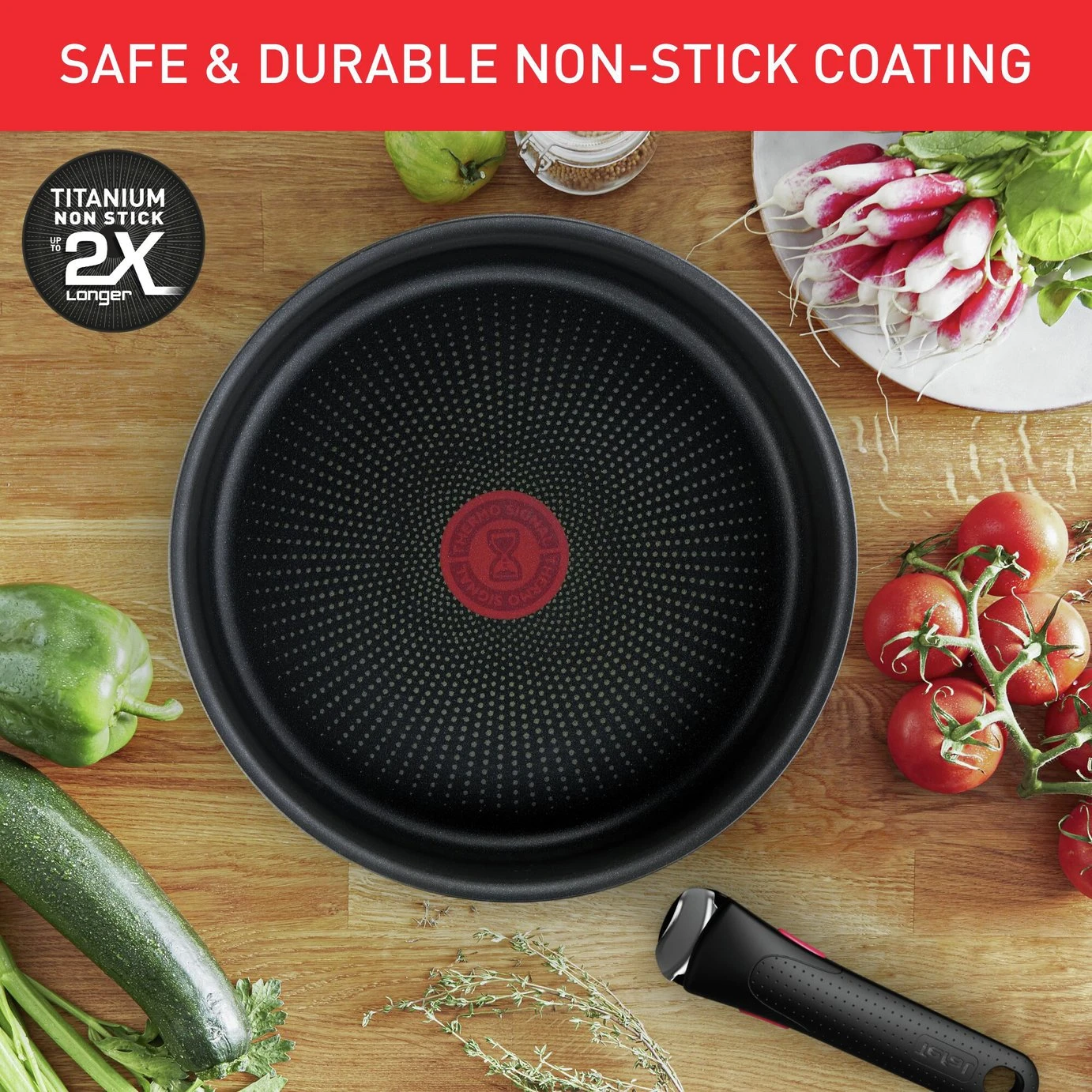 Simplify your cooking with Tefal Ingenio Daily Chef: durable cookware with our iconic removable handle. Ingenio is a total game-changer in the kitchen. Minus the handle, these pans stack inside each other. Plus, it’s a bit of a magician in the kitchen, turning frying pans into oven dishes, and saucepans into bakeware. Start cooking on the hob then move the pan into the oven. Unclip the handle and voila: the pan is a baking tin. The pots also make stylish serving dishes; just use the handle to go from oven to table. Talk about versatile!
