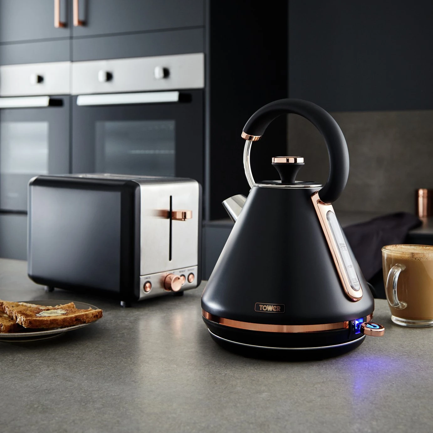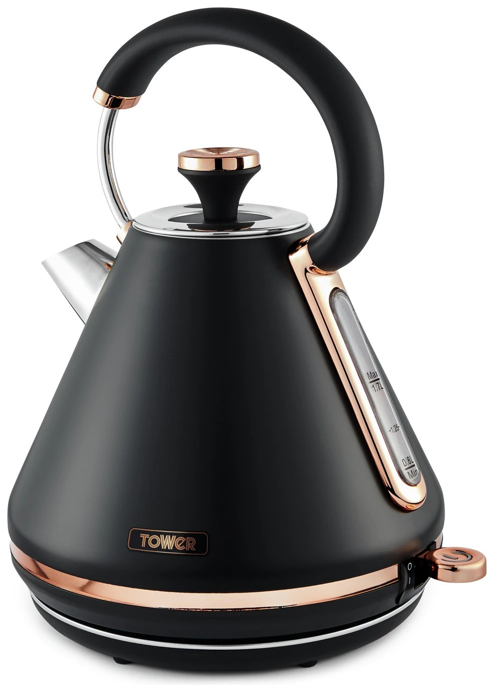 Add contemporary style to your kitchen with this elegant Cavaletto Pyramid Kettle from Tower. It features a matte black finish with lustrous rose gold accents, making this kettle an eye-catching addition to any countertop. Full of modern functionality, it’s powered by rapid boil technology to reduce your wait for a delicious hot drink, boiling 1 cup in less than 45 seconds. A large 1.7L capacity lets you make up to 7 drinks from a single fill, ideal for families and busy households alike.