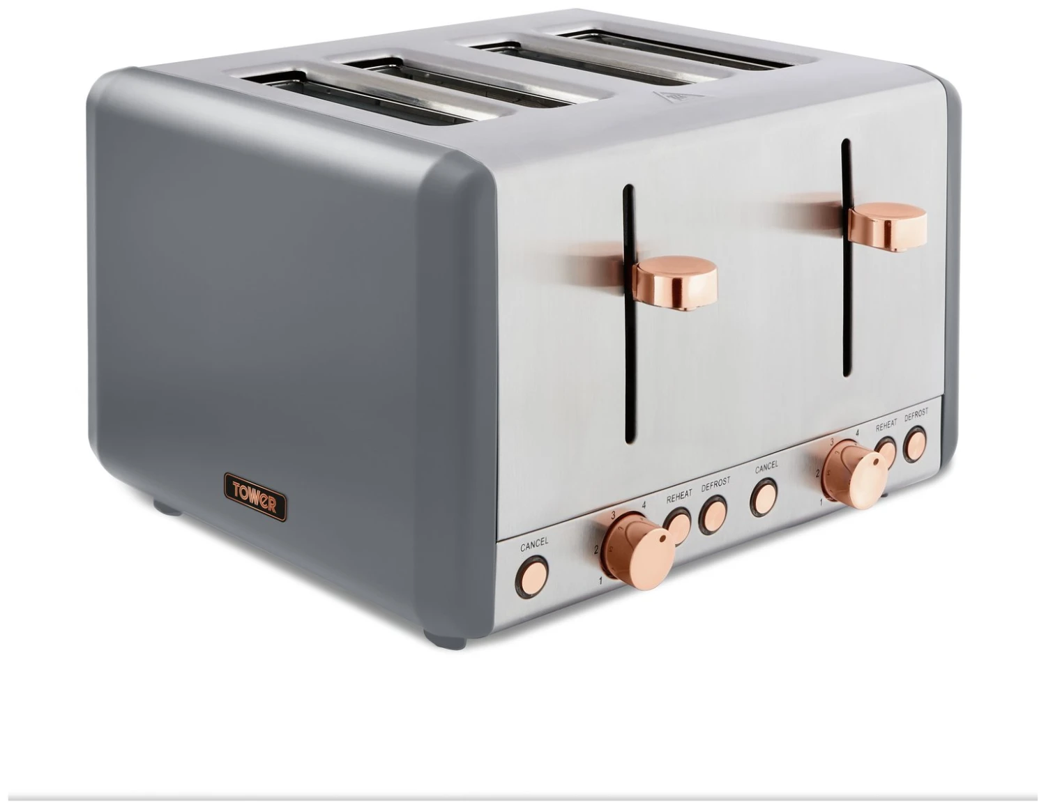 Combining grey and rose gold with a durable stainless steel finish, this Cavaletto 4 slice toaster injects a splash of contemporary design into your breakfast routine. The variable browning controls let you select the perfect toasting texture to suit your taste. Defrost, reheat and cancel options put you in control of the toasting cycle, so you can warm up your snacks or toast straight from frozen.