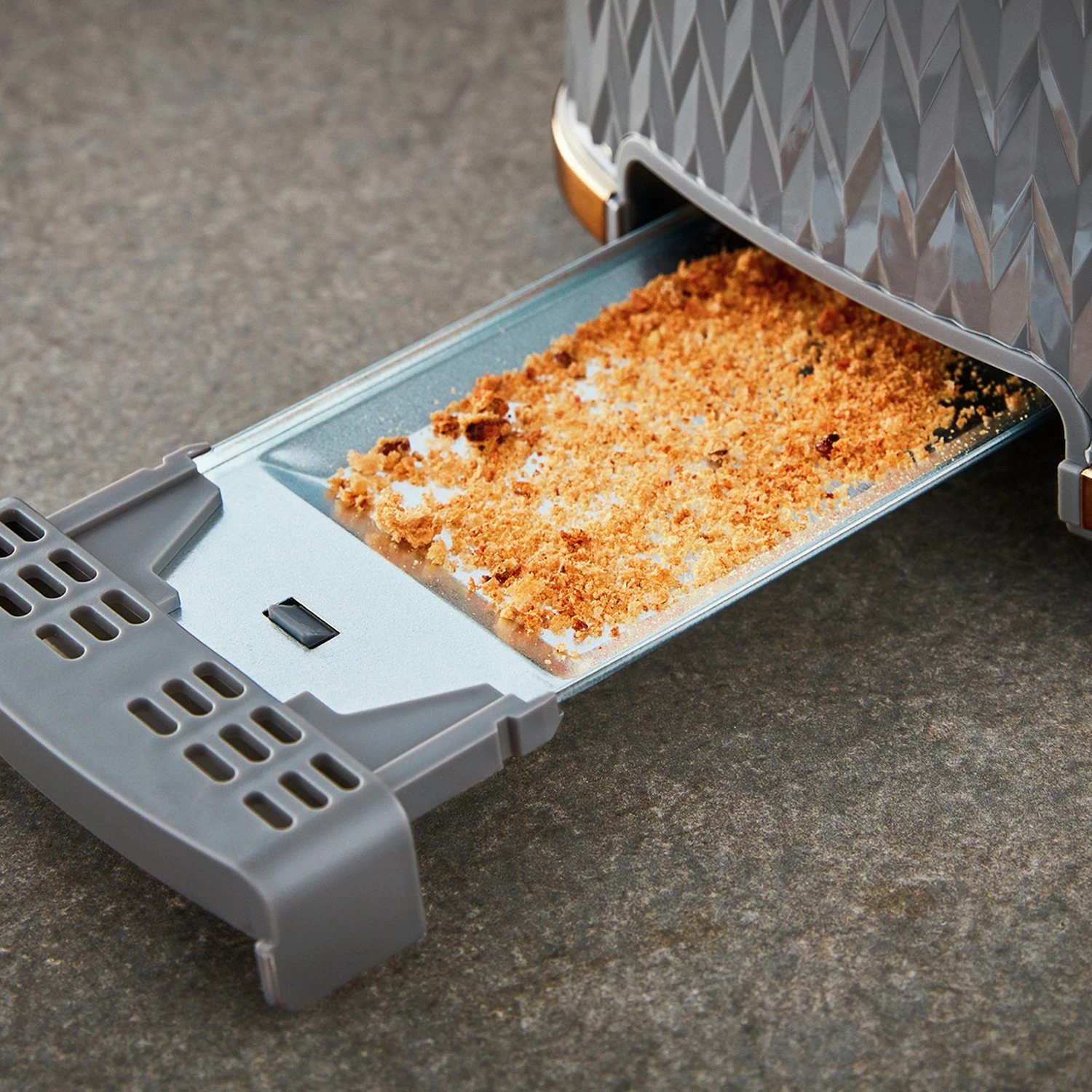 - Removable crumb tray.